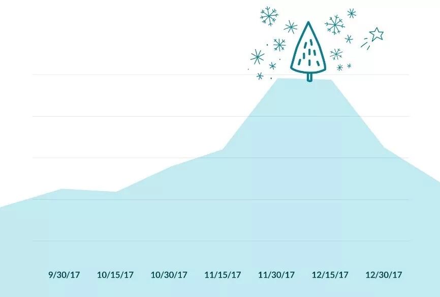 以上两张图说明了提前备战的重要性。图中的广告不是在黑五、网一等购物节当天才开始垂直上升,而是从旺季前的一个月内就开始逐渐上涨了。因此您需要现在就开启广告!