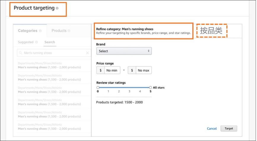 商品投放可以按品类以及ASIN投放,同时支持否定。以跑鞋为例,一起来看看实操方法。