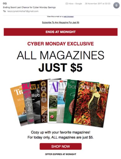 以下是GQ杂志邮件中有非常强号召性的行动召唤设计案例:
